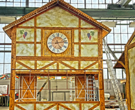 Le toit de nos véhicules de marché est fabriqué en plastique recyclé avec un effet bardeaux de bois, un matériau entièrement recyclable. Cette solution durable rend le véhicule non seulement résistant aux intempéries et léger, mais lui confère également un charme traditionnel et authentique.